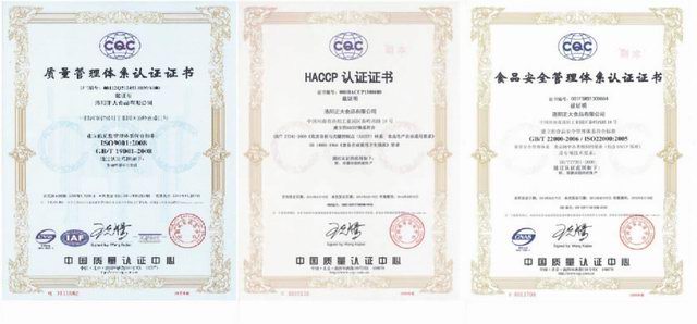 2013年8月19日,公司正式獲得食品安全管理、HACCP管理體系兩個管理體系的認證證書。公司自2012年11月18日開業(yè)以來,在全體干部員工齊心協(xié)力基礎上,已成功通過了質(zhì)量管理體系、食品安全管理體系、HACCP管理體系三個管理體系認證,為產(chǎn)品在全國各地市場準入、出口備案及管理水平提升奠定了基礎。