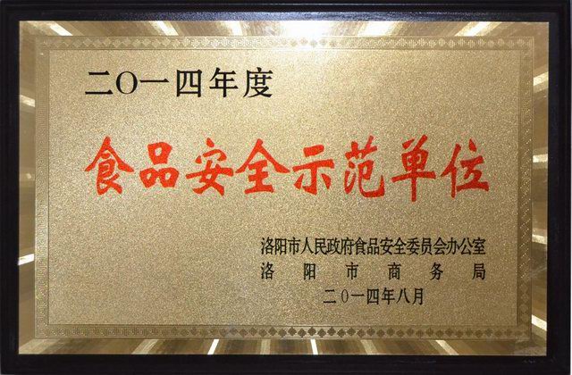 2014年9月3日下午,洛陽(yáng)市召開創(chuàng)建食品安全示范單位現(xiàn)場(chǎng)推進(jìn)會(huì),洛陽(yáng)市政府領(lǐng)導(dǎo)、相關(guān)委局負(fù)責(zé)人及食品安全示范單位申報(bào)企業(yè)參加了推進(jìn)會(huì),會(huì)上授予洛陽(yáng)正大食品有限公司“食品安全示范單位”。