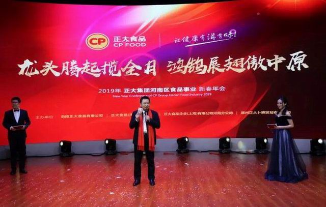 2019年1月21日,“龍頭騰起攬全月,鴻鵠展翅傲中原”——正大集團(tuán)河南區(qū)食品事業(yè)2019新春年會(huì)在洛陽東華大酒樓盛大召開。正大集團(tuán)農(nóng)牧食品企業(yè)(中國)副董事長王鴻章、正大集團(tuán)河南區(qū)食品事業(yè)***總裁王學(xué)斌、正大集團(tuán)河南區(qū)產(chǎn)業(yè)化總裁宋小兵及河南區(qū)食品事業(yè)各公司部門主管、員工代表300余人齊聚一堂,共享盛典。年會(huì)特邀河南東方正大有限公司洛陽飼料廠董事長茹懷智、中方副總經(jīng)理黃天發(fā)及河南和諧人力資源開發(fā)有限公司董事、總經(jīng)理王縣委、副總經(jīng)理張麗云參加。