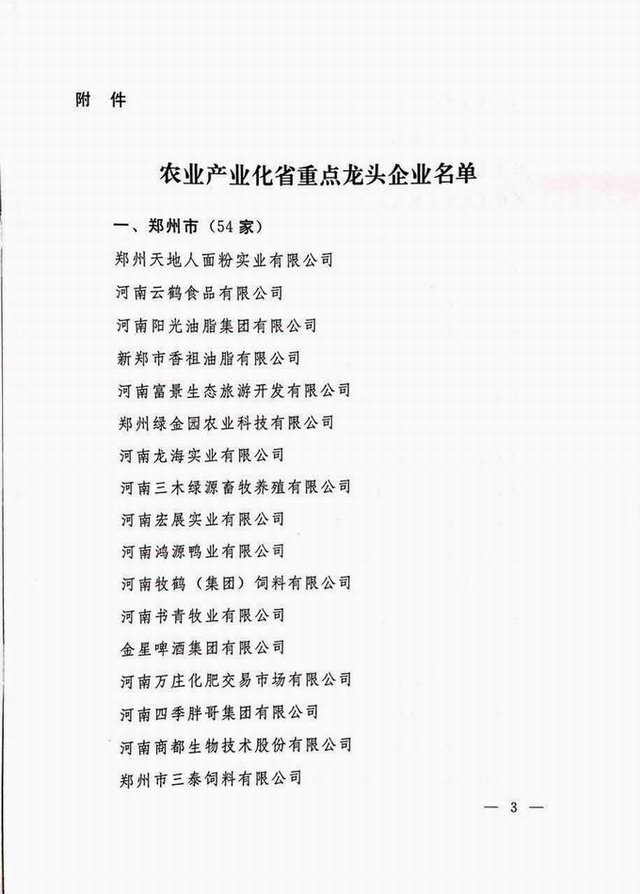 農(nóng)業(yè)產(chǎn)業(yè)化省重點(diǎn)龍頭企業(yè)2016.10.24 發(fā)布時(shí)間:2020-01-15來源:洛陽正大食品有限公司點(diǎn)擊:13864