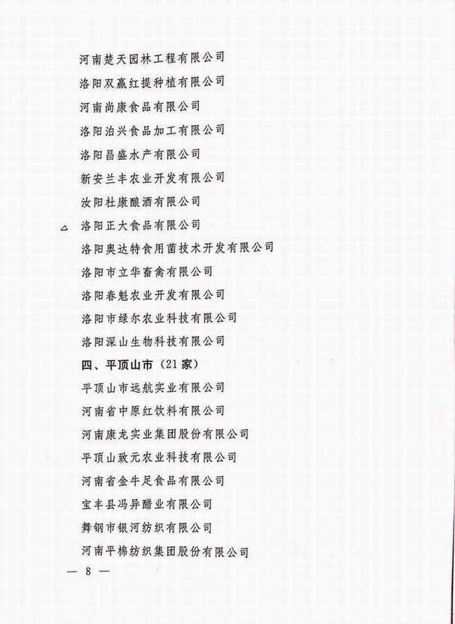 農(nóng)業(yè)產(chǎn)業(yè)化省重點(diǎn)龍頭企業(yè)2016.10.24 發(fā)布時(shí)間:2020-01-15來源:洛陽正大食品有限公司點(diǎn)擊:13864 上一篇:出口食品生產(chǎn)企業(yè)備案證明 下一篇:56.河南民營(yíng)企業(yè)現(xiàn)代農(nóng)業(yè)100強(qiáng)